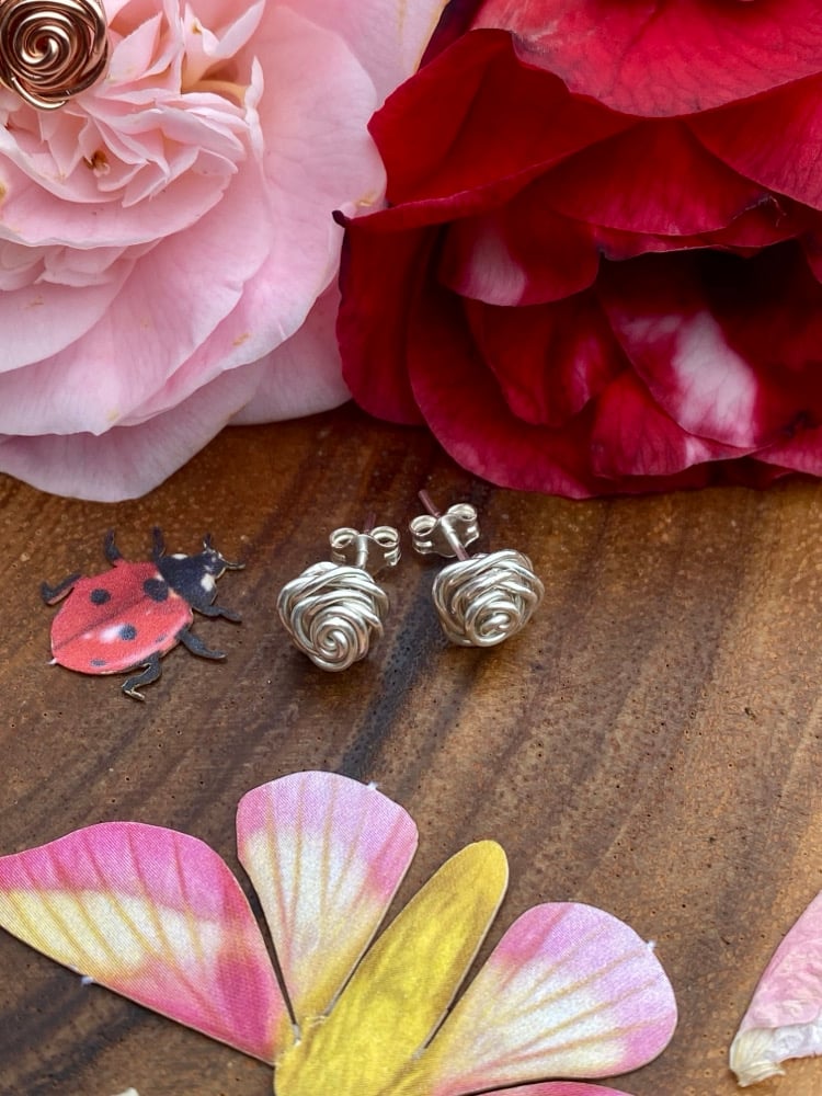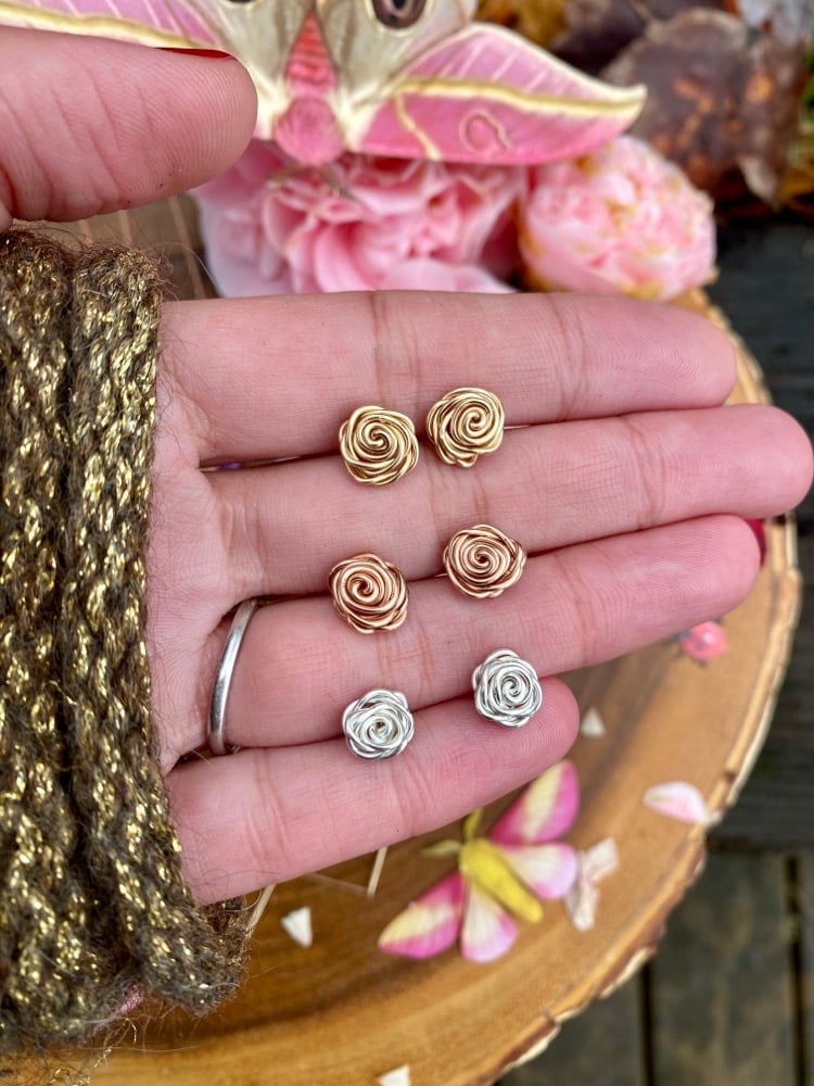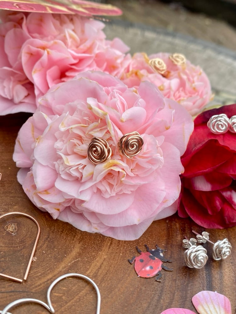 🌹The Coiled Rose Stud Earrings are a minimalist dream! This design is a simple technique that requires only one element; fine metal wire. Choose between Sterling Silver, 14KT Rose Gold fill, or 14KT Gold fill metal.