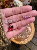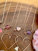 🍓Cupids Peach Moonstone Necklace is a sweet way to remind yourself or one you care for that you are loved. A dainty 8mm x 8mm heart rests in the center of a hand wrapped wire arrow. The heart is completely natural Moonstone with no treatments whatsoever. Choose between Sterling Silver or 14KT Rose Gold fill chain at either 16” or 18” length. Feel free to reach out to me about necklace length or any other jewelry questions/inquiries.