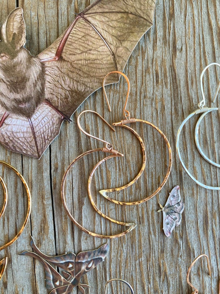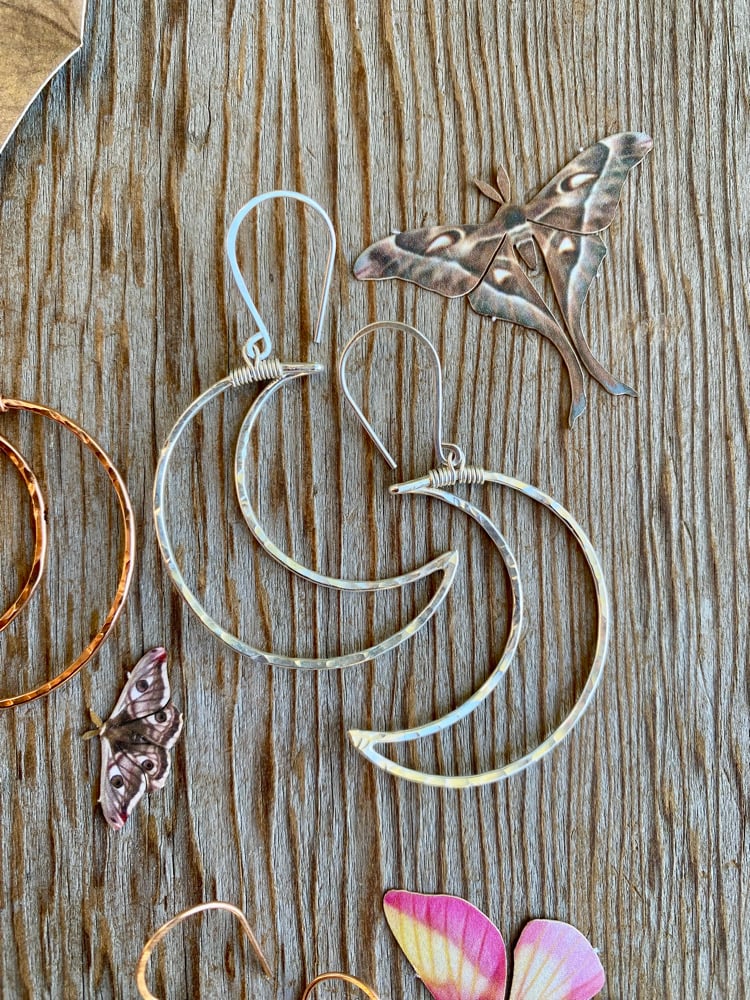 Large Hammered Crescent Moon Earrings