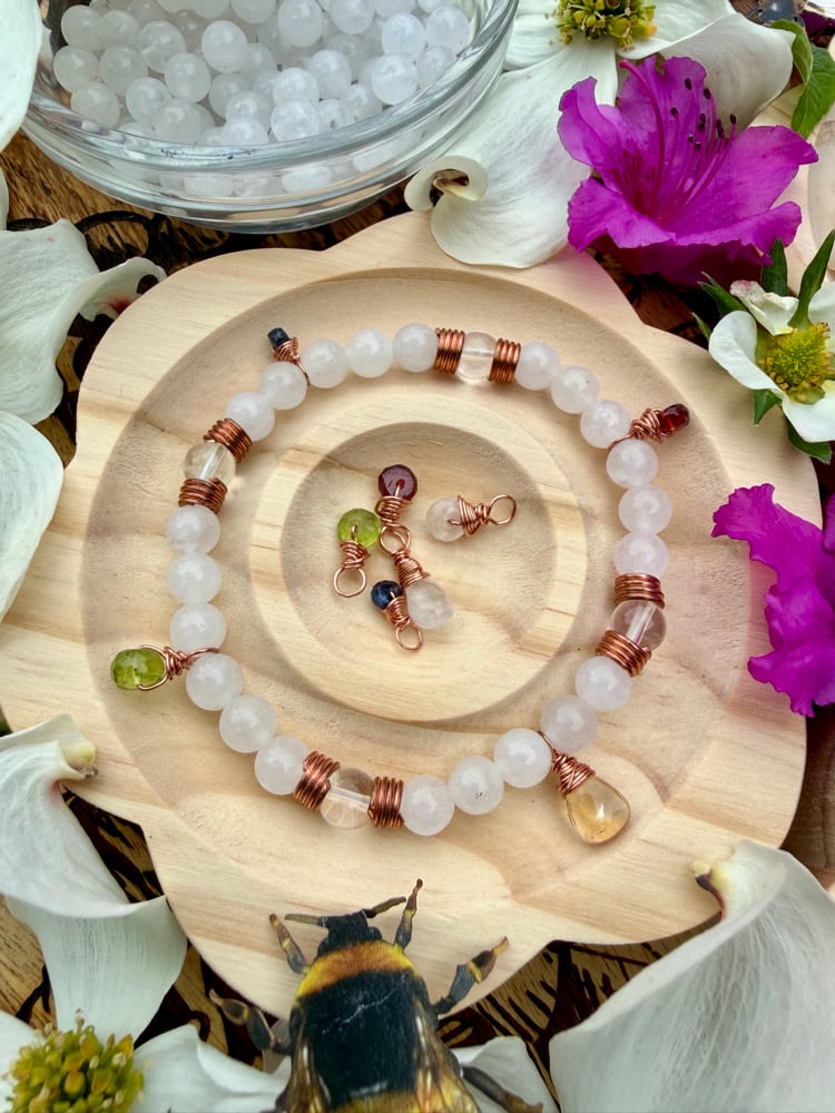 💎FOR YOUR BRACELET- Each participant will recieve one bracelet with multiple birthstone charms. You will have the choice between White Quartz, Pink Lepidolite, or Green Aventurine beads. Use your beads to create a pattern using an array of handmade copper spacer beads plus some extra gemstone beads for accents. Next choose between over 12 birthstone charms to create your unique charm bracelet. This is a great chance to create a bracelet that represents a special bond formed between a group of people, such as a family or friend group. Most gemstones used are completely natural with no treatments whatsoever. Aquamarine, Citrine and Sapphire are the acception being a completely natural stone that has been heat treated for color enhancement.